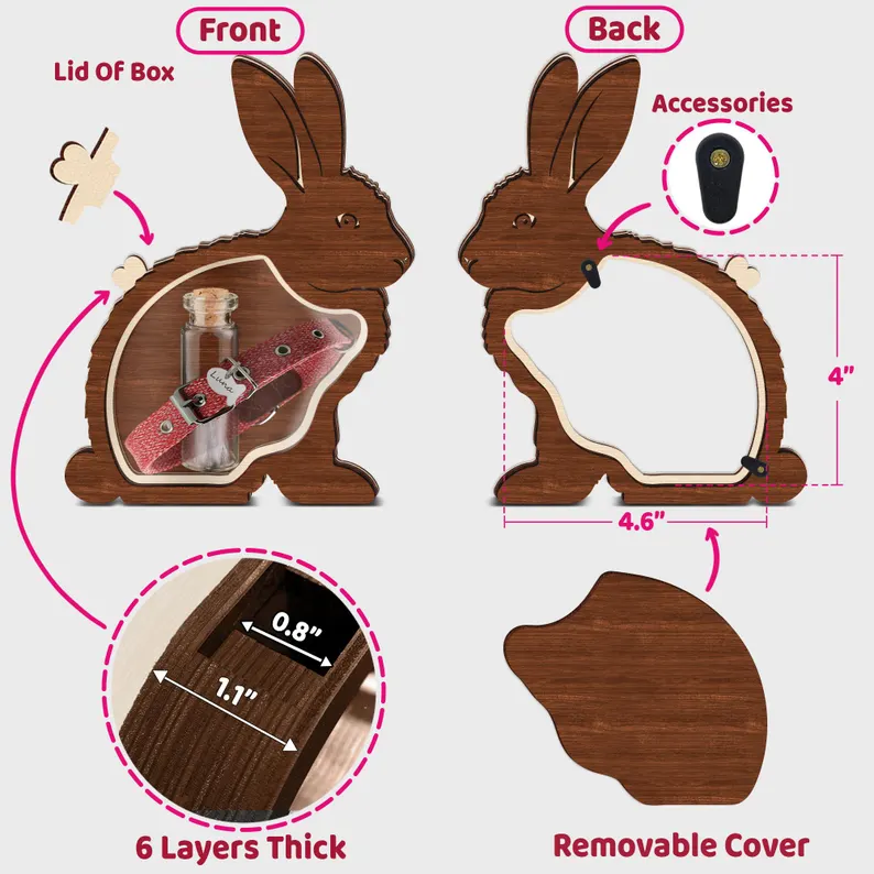 ODM OEM Personalised Wooden Pet Hair Shadow Box Rabbit Memorial Fur Keepsake for Cats Dogs Loss Bunny Figurine for Bunny Rabbit