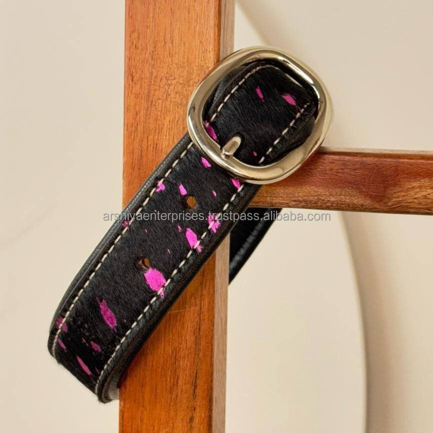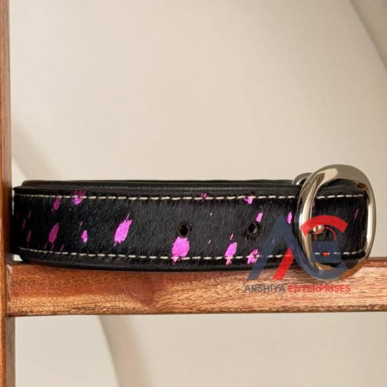 ODM OEM Pet Accessories Metallic Cowhide Leather Dog Collar with Metal Buckle & D-ring Genuine Leather Eco-friendly Pet Collar