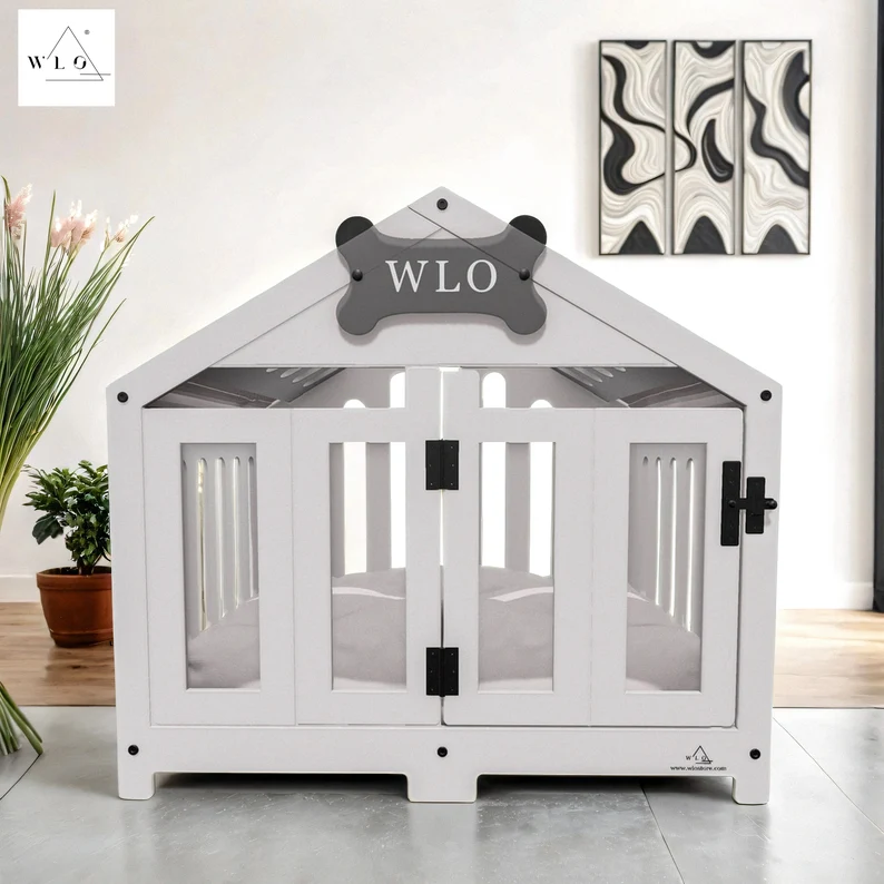 ODM/OEM Premium White Modern Gabled Dog Crate Free Customization Training Pet Interactive Wood Exercise Toys Gift Cushion Covers