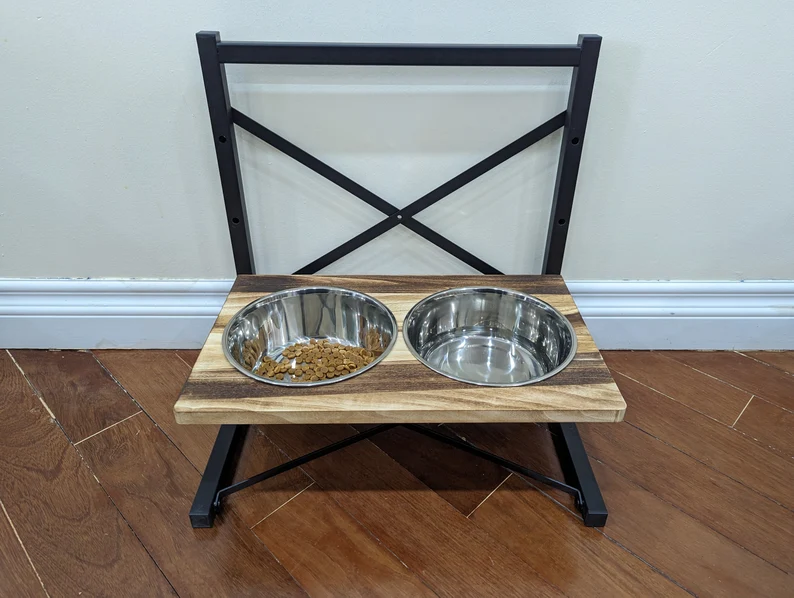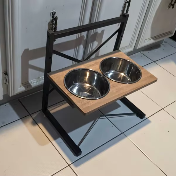 ODM OEM Rustic Adjustable Pet Bowl Stand - Handmade Wooden Elevated Feeder - Food-Safe Stain - Customizable Pet Feeding Station
