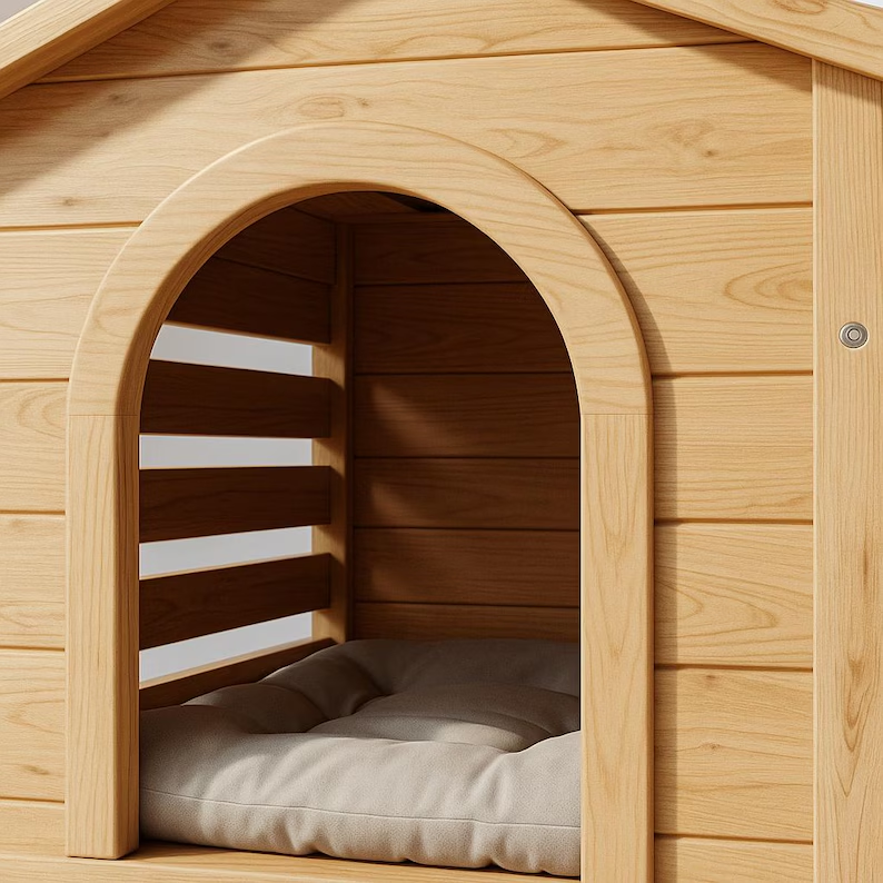 ODM OEM Stylish Wooden Pet Shelter Backyard Modern Outdoor Dog House Ventilation Weatherproof Puppy Kennel Cushion Pet Beds