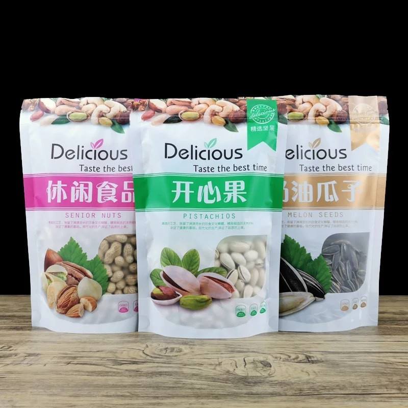 ODM Plastic Bag Self standing Bag Universal Packaging Bag Xia Wei Yi Guo Bi Gen Guo Pistachio Self sealing Zipper Bag low MOQ