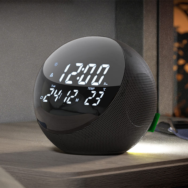 ODM Sleek Design Home Radio Wireless Clock Radio with LED Display USB Charging Sounds of Nature Calendar Temperature NFC Pairing