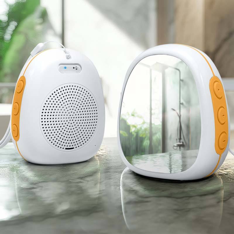 ODM Sleek Portable Wireless Speaker Waterproof with RGB LED Lighting Hands-Free Function & Front PVC Mirror Hanging Nylon Strip