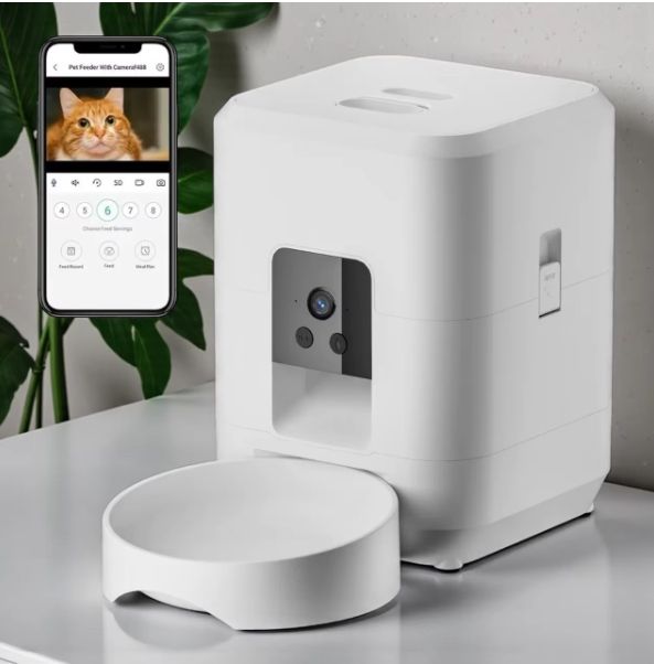 Automatic, Camera, Ultra Quiet, Durable, Lightweight, Easy To Clean, Android Compatible, Ios Compatible, Feeding Schedule, Timer, Voice Recording, Food Grade Material, Removable Bowl