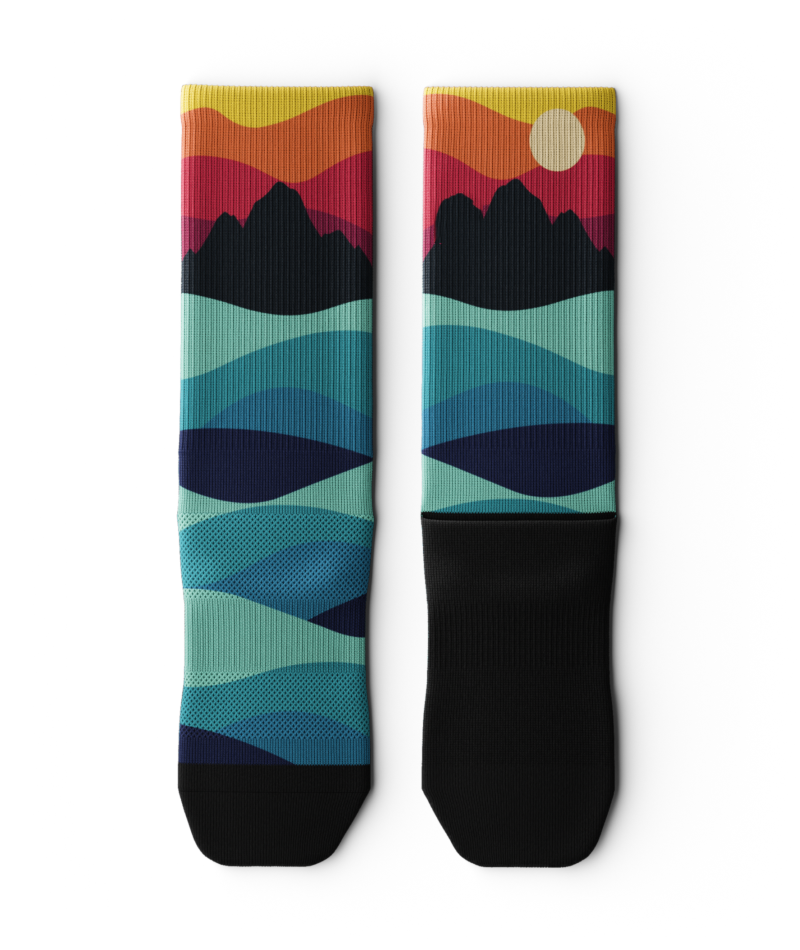 ODM Wholesale Manufacturer Men Women Custom Landscape Graphic Sports Crew Length Cotton Socks Multicolor Bulk Order Bottom Logo