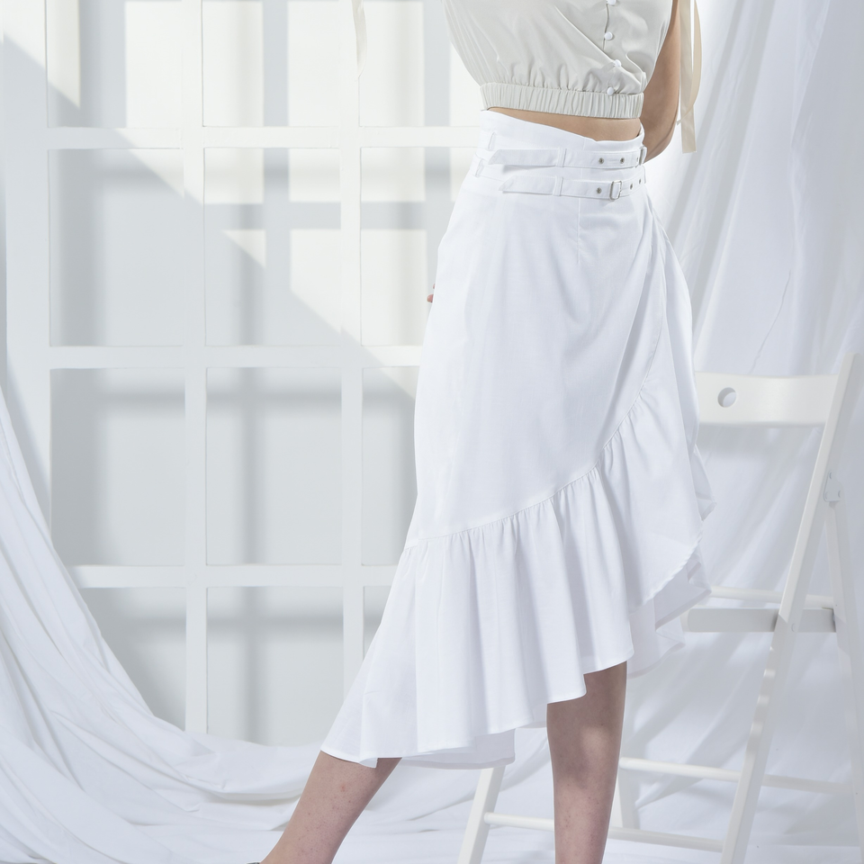 Product Name:ODM eco-friendly material elegant pure white waist women wrap skirt