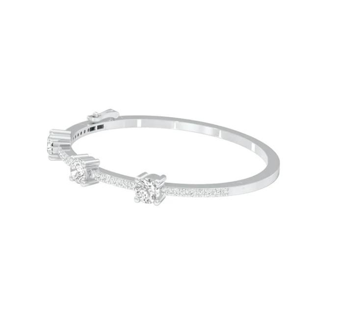 OEM 14K Rose / White / Yellow Gold Three Stone Diamond Bangle Bracelet for Women