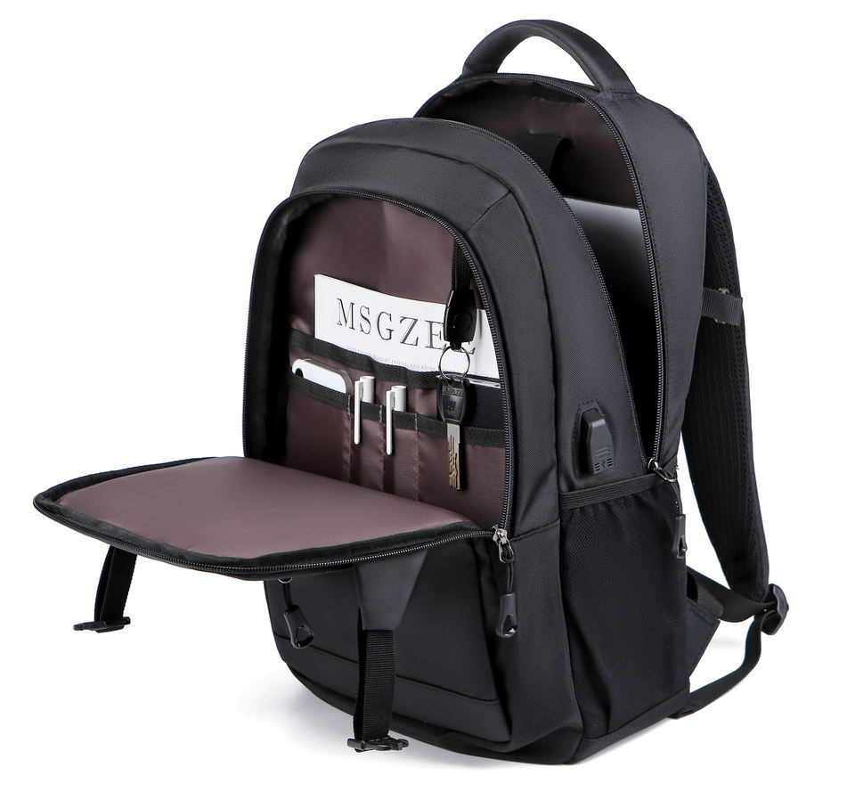 OEM 15.6 Inch Black Laptop Backpack Waterpoof Nylon Multi Pocket Daypack Low Moq Customer logo Anti Theft Backpack with Usb