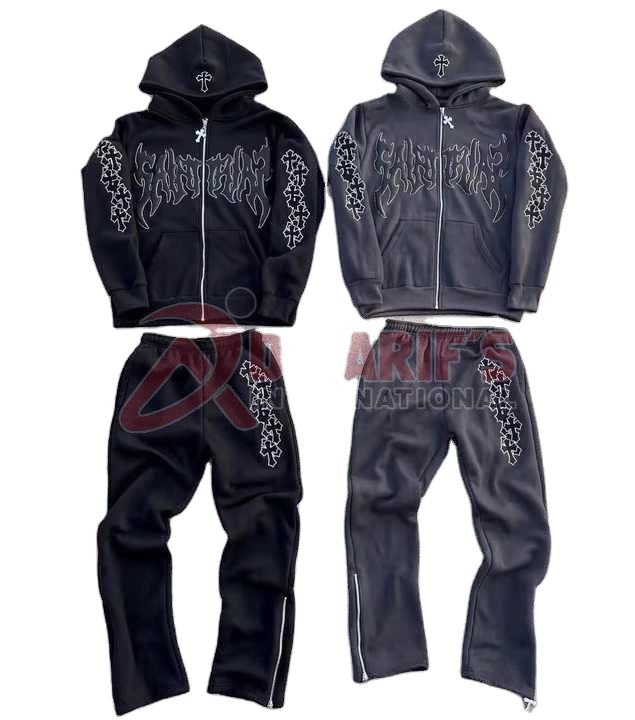 OEM 2025 Custom Puff Print Zip-Up Hoodie and DTG Sweatpants Plus Size Men's Chenille Hoodie and Baggy Pants Set
