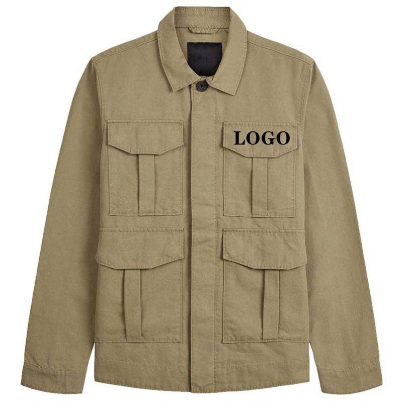 OEM 2025 High Quality 100% Cotton Patch Pockets Retro Military-Style Utility Jacket for Man Vintage Jacket for Men