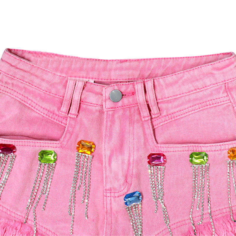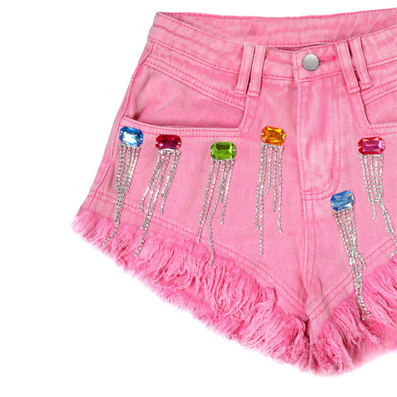 OEM 2026 Customizable Latest Design Girl Denim Shorts Rhinestone Diamond Colorful Breathable Washed Jean Shorts