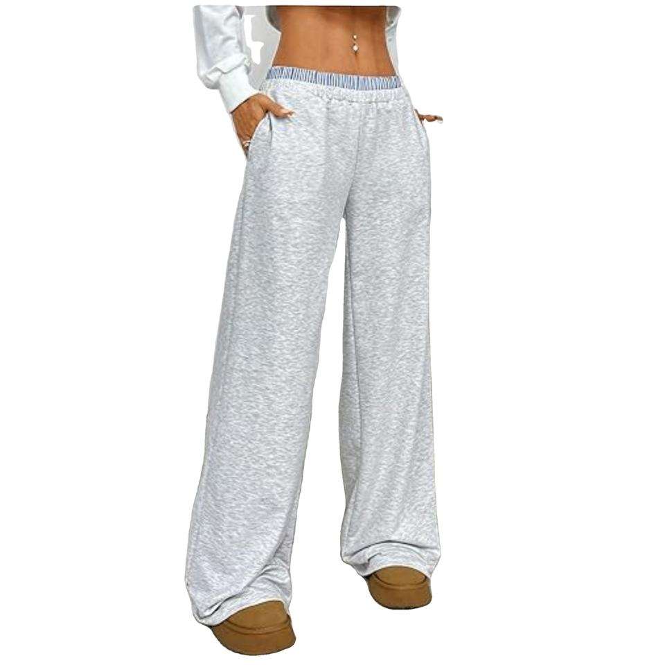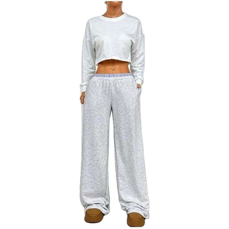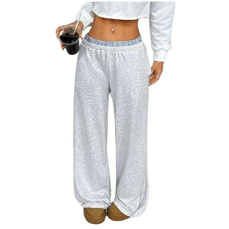 OEM 2026 Pants High Quality 100% Cotton Comfortable Low Rise Double Waist Grey Wide Leg Sweatpants for Women
