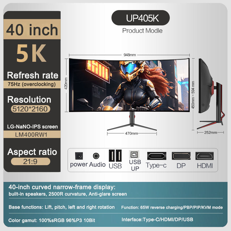 Product Name:40-inch 5K 75HZ Curved Professional eSports Gaming Monitor
