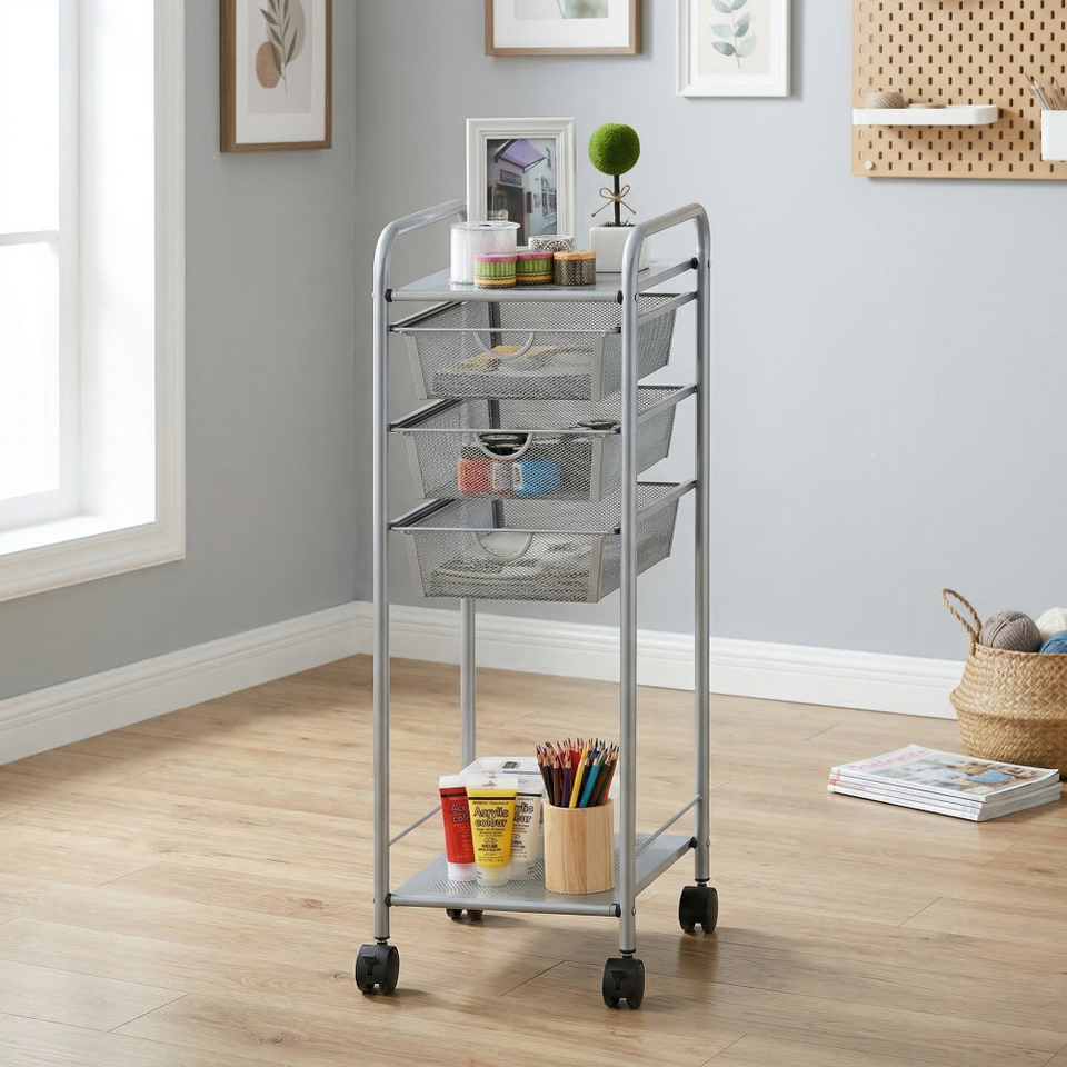 OEM 3-Drawer Removable Metal Mesh Clothing Organizer Storage Cart Modern Space-Saving Household Living Room Taiwan
