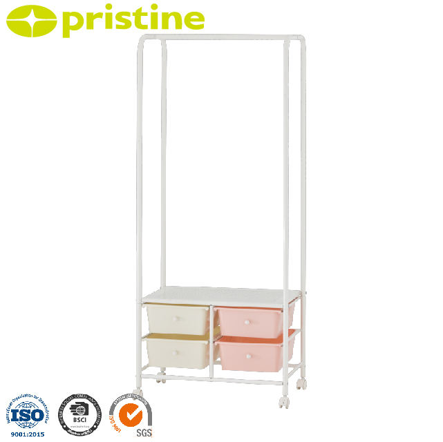 OEM 4-Tier Metal Drawer Cart Hanger Modern Home Storage Laundry Organizer for Wardrobe Taiwan Household Furniture Manufacturer