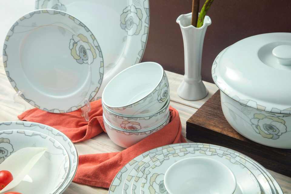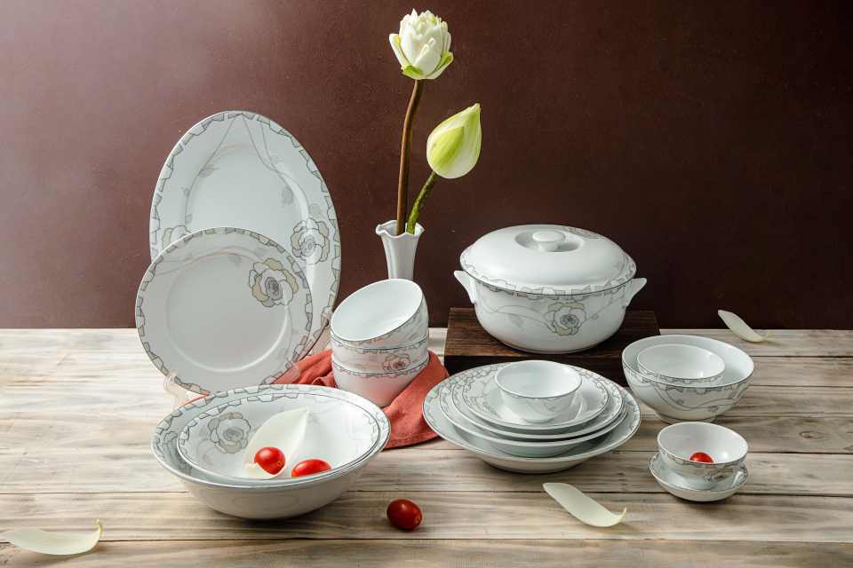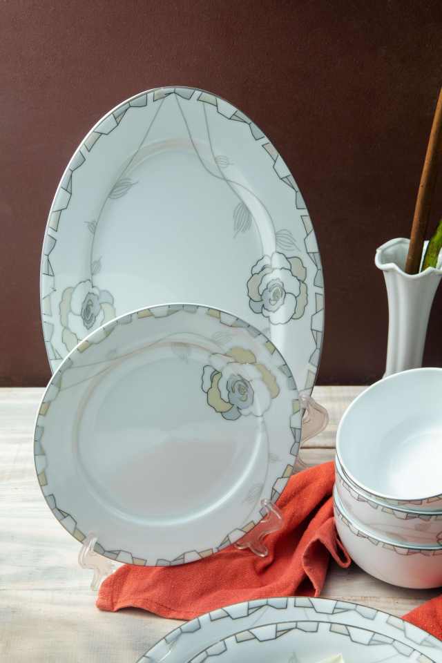OEM 9-Inch White Porcelain Round Plate with Luxury White Flower Design Hot Trending 02 Dishes Home Hotels Restaurants Wholesale