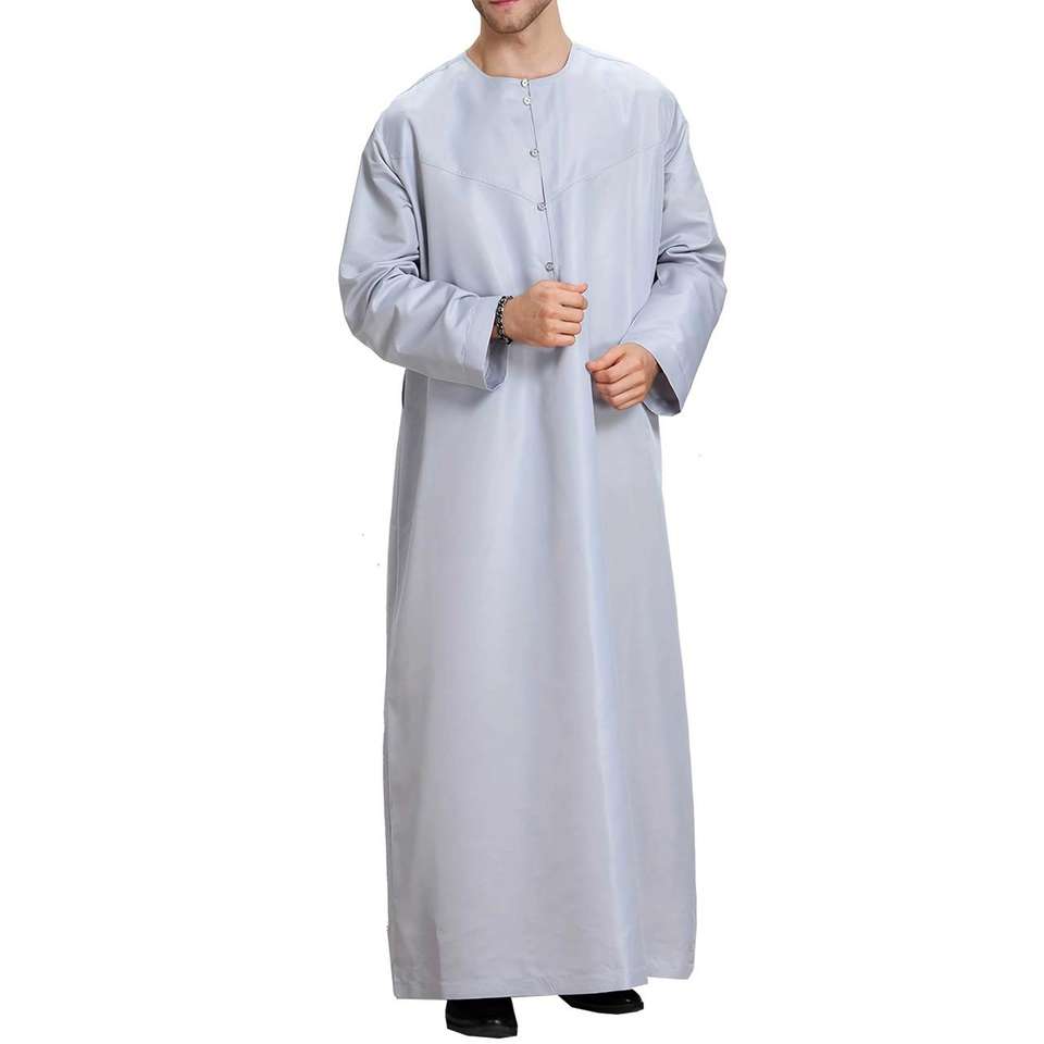 OEM Arabic Dubai Islamic Clothing Men Thawb Jubba Long Sleeve Ethnic Thobes Solid Color Male Muslim Thobe