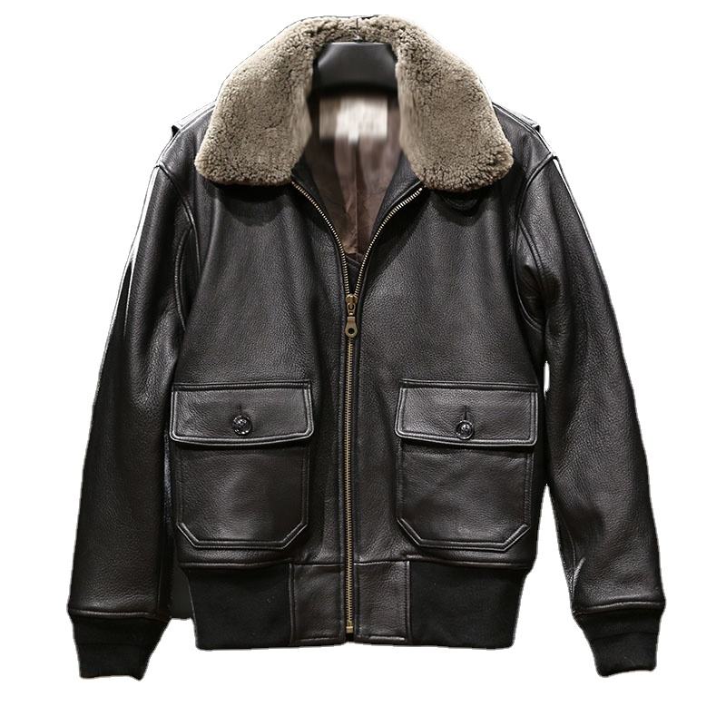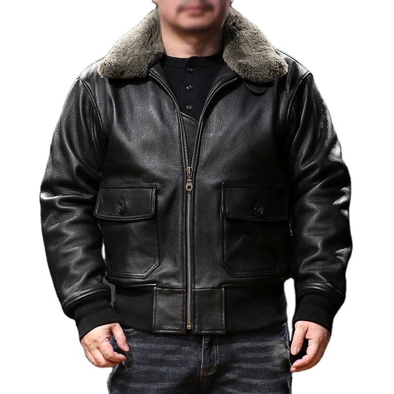 OEM Autumn/Winter Men's Leather Safari Jacket | Genuine Leather Mandarin Collar | Casual Retro Flight Style Patchwork Front
