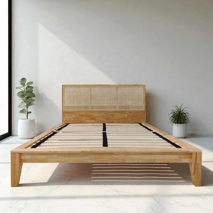 OEM/ODM Bedroom Furniture Rubberwood Platform Bed Frame Queen Size Japanese Joinery Tool-Free Setup Wooden Bed Vietnam-Made