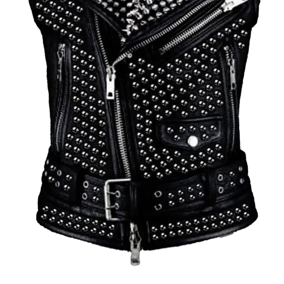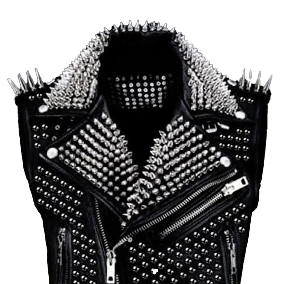 OEM Best Style Professional Custom Logo Leather Vest Warm Biker Leather Steampunk Silver Studded Men's Vests & Waistcoats