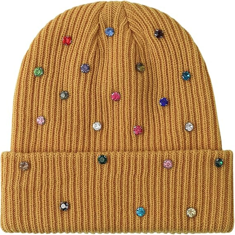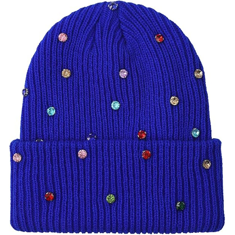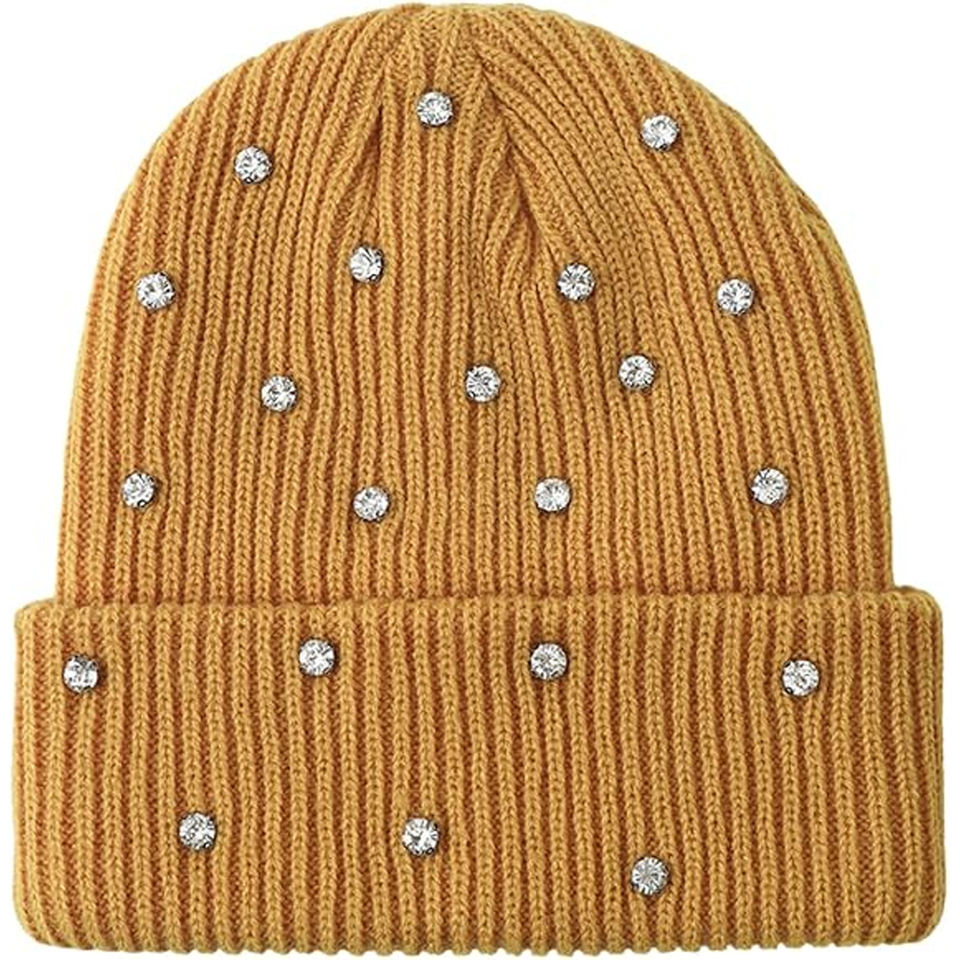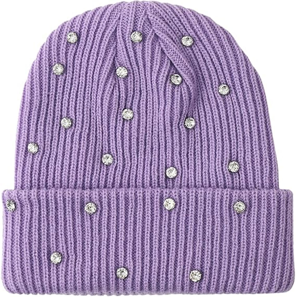 OEM Black Rhinestone Beanie Hat Rib Knit Winter Cap Women Men Soft Warm Stretch Streetwear Custom Logo Hat