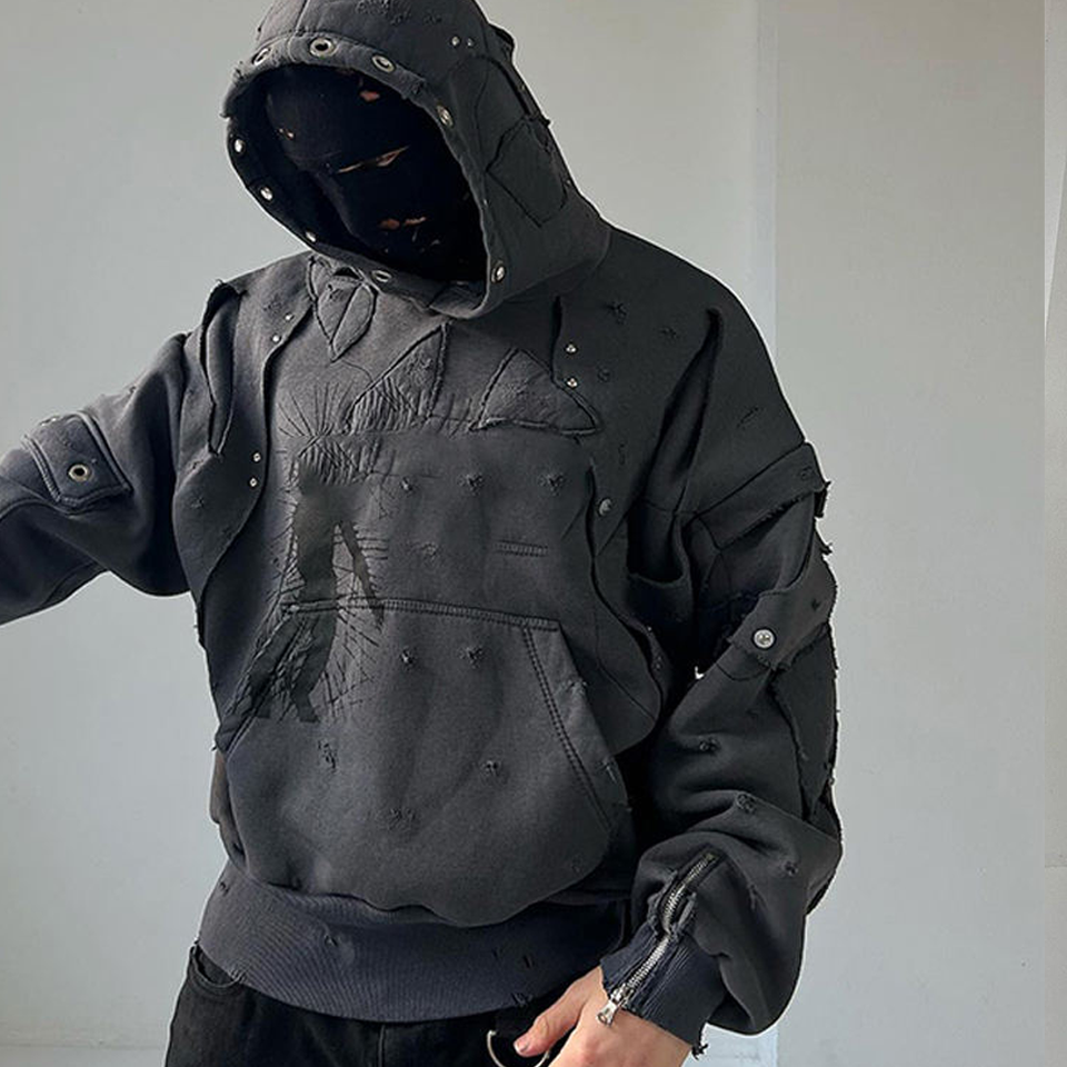 OEM Bulk 450 Gsm Heavy Plain Hoodie Winter Streetwear 100% Cotton Distressed Patch Prewashed Fleece Custom Logo Print