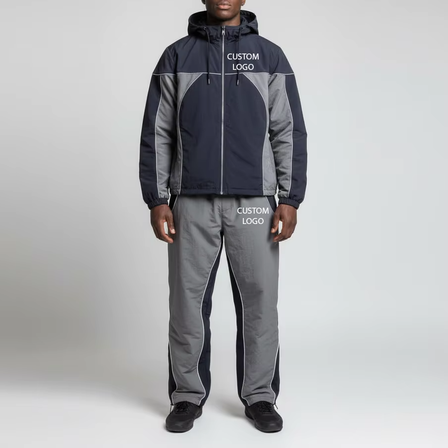 OEM Custom Zip-up Windbreaker Tracksuits Jacket Hoodies Pajama Set Solid Waterproof Polyester/Nylon Windproof Quick Dry