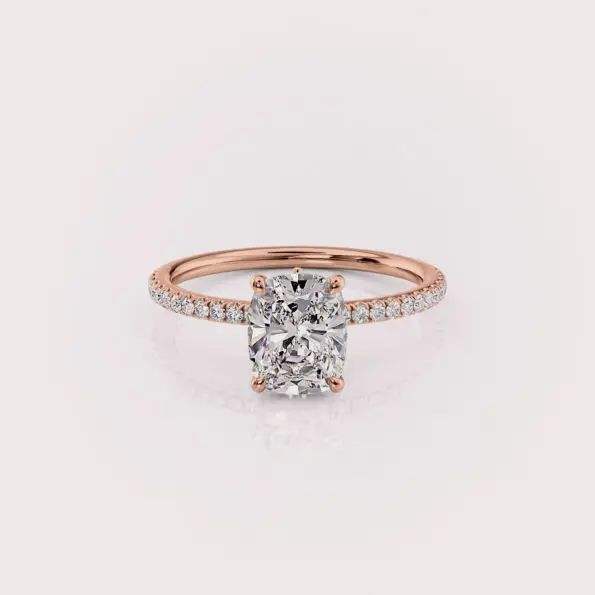 OEM Cushion Cut Lab Grown Diamond Ring 9K Rose / White / Yellow Gold Fine Jewelry