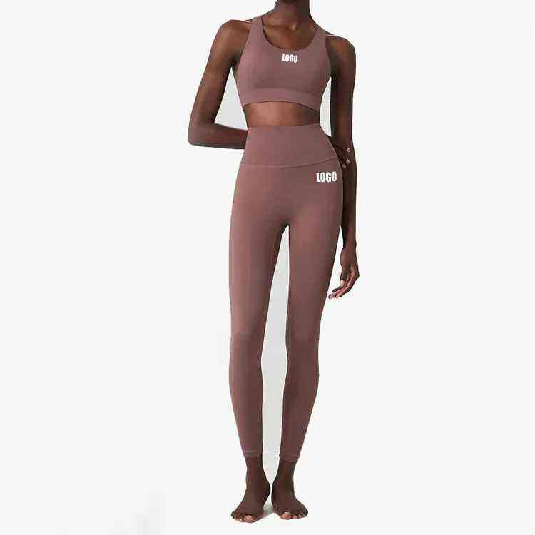 OEM Custom 2-Piece Yoga Set Cropped Longline Bra Top & Full-Length Leggings Workout Gym Conjuntos for Women