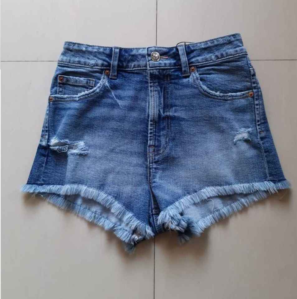 OEM Custom 2025 Summer Temperament Sexy High Waist Washed Ladies Canvas Pants Blue Straight Casual Cargo Shorts Patchwork Bleach