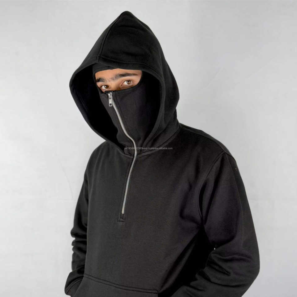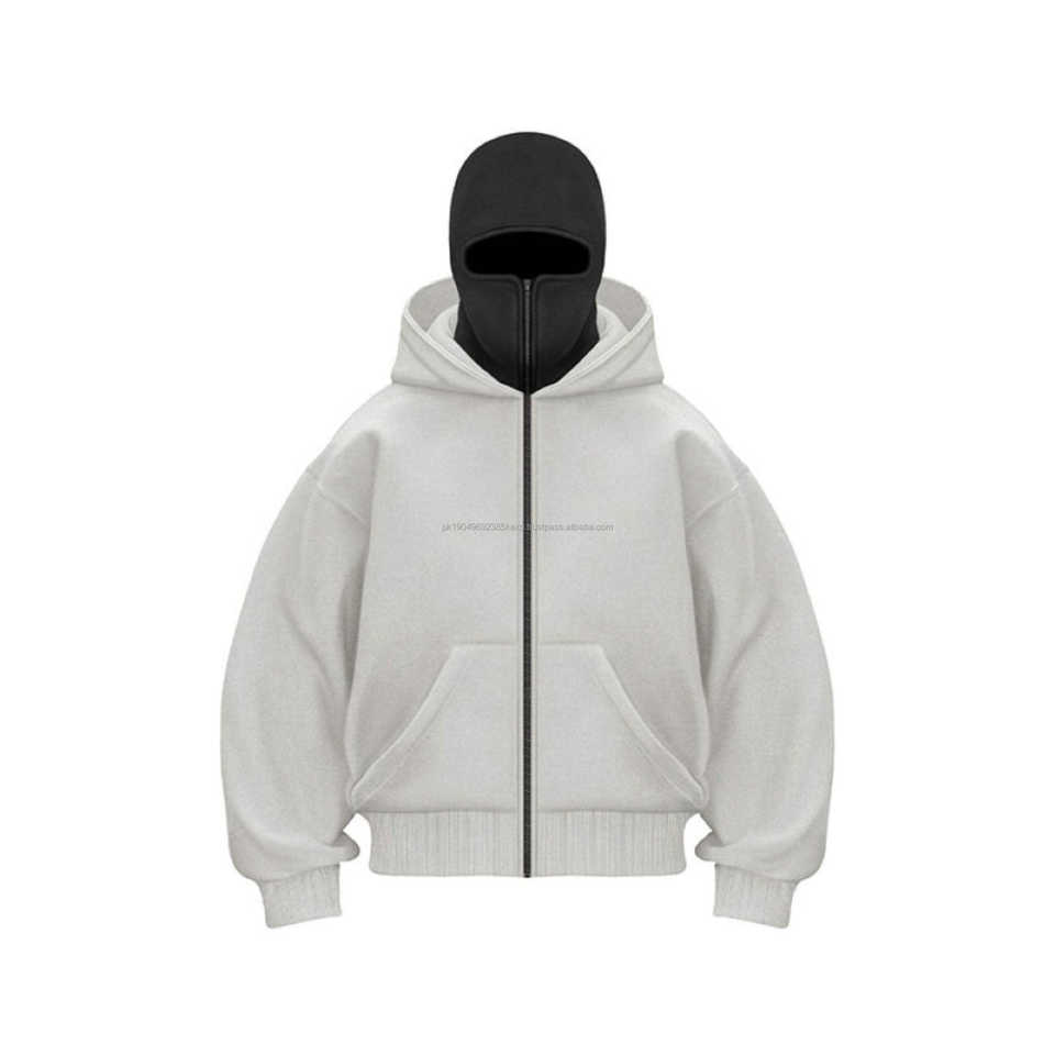 OEM Custom 500GSM Double Hood Streetwear Heavyweight Balaclava Hoodie Oversized Double Layered Masked double hood men's hoodies