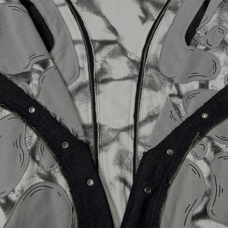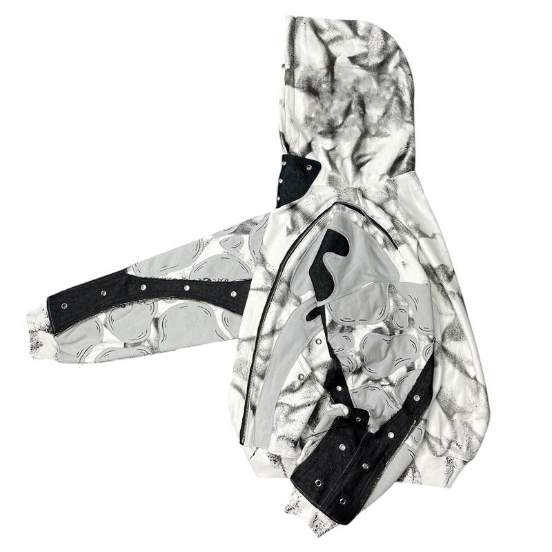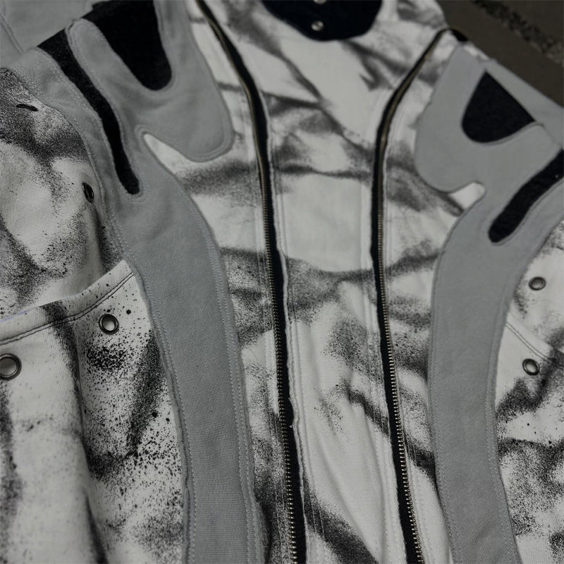 OEM Custom Abstract Structured Layered Oversized Boxy Patchwork Rivets Tie Dye Double Decorative Zip Men's Hoodie