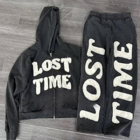 OEM Custom Acid Wash Cut Sew for Zip Hoodie 320gsm Sweatpants Set Embroidered Men's Hoodies Regular Track Pants Winter