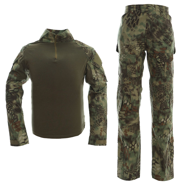 OEM Custom Camouflage Tactical Uniform Canvas Waterproof Breathable Frog Suit Training Shirt with Knitted Pants for Men