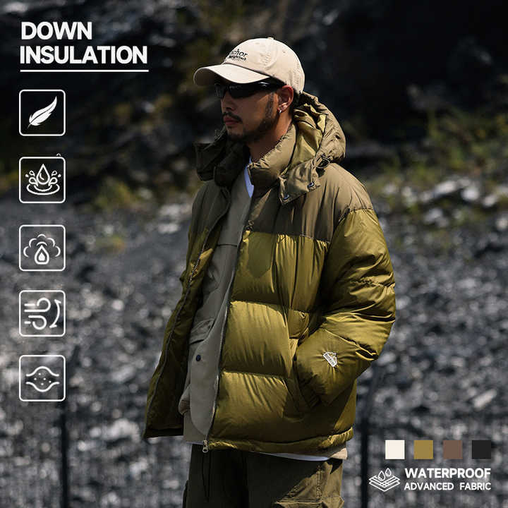 OEM Custom Design Men's Retro Waterproof 90 White Duck Down Jacket Padded Hooded Padded Quilted Puffer Down Jacket for Men
