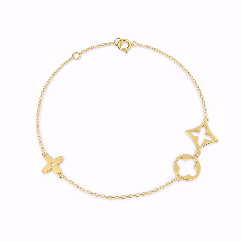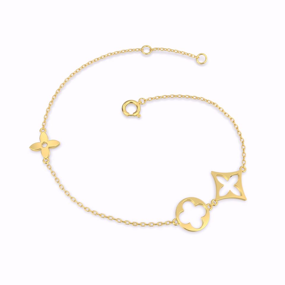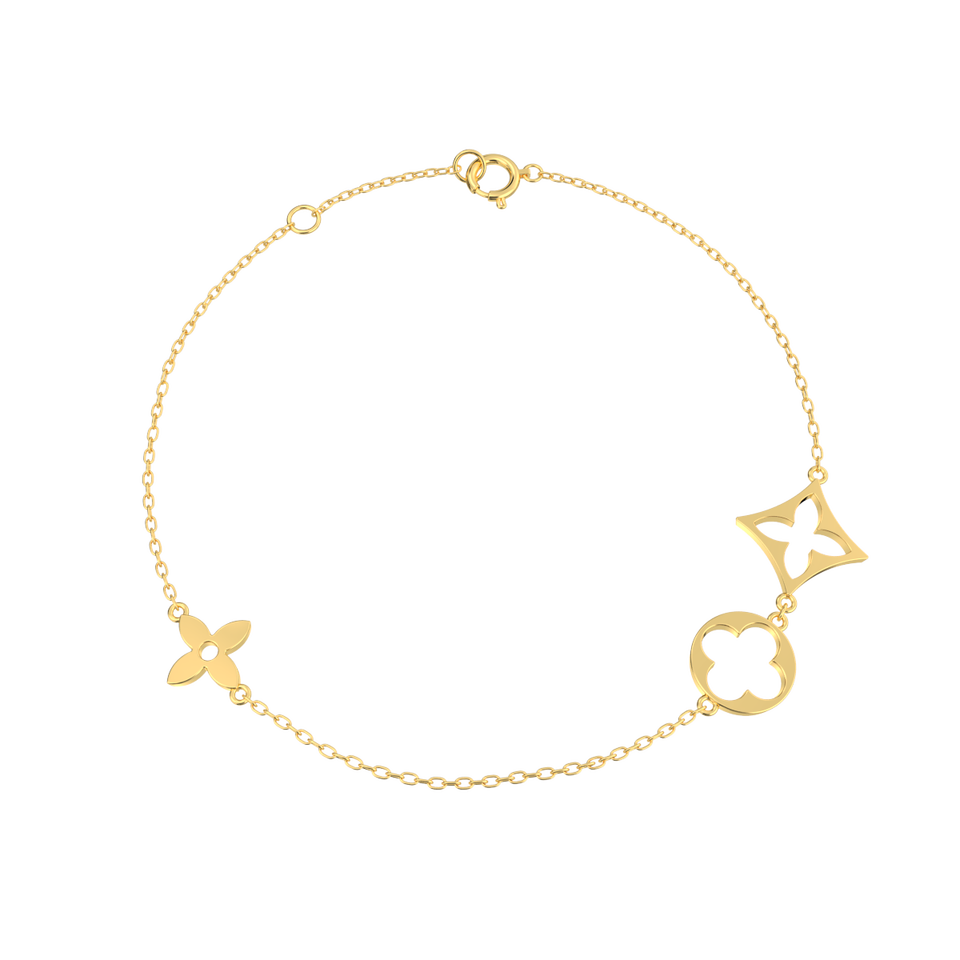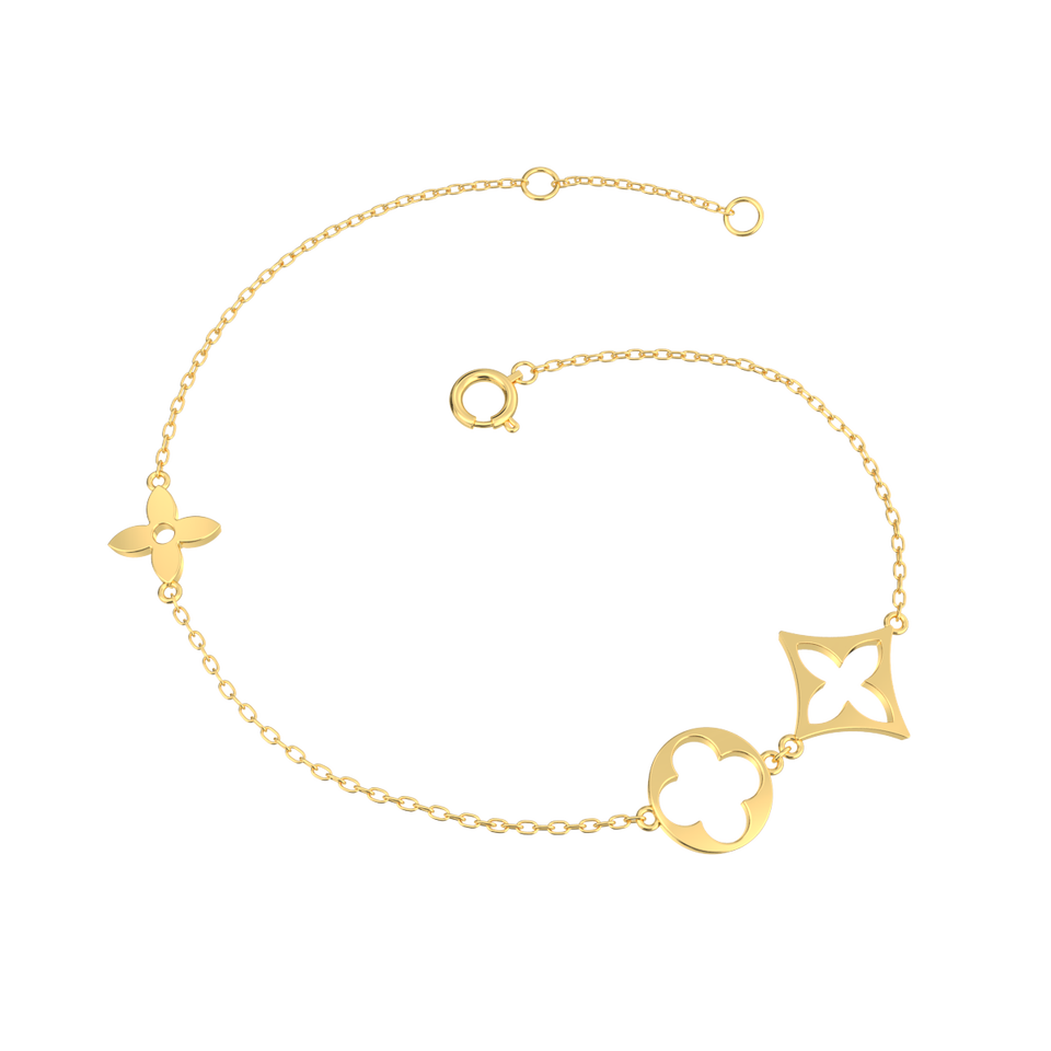 OEM Custom Designer 10K Solid Gold Geometric Flowers Charm Bracelets Bangles Fine Jewelry Vietnam Manufacturer Gift for Women