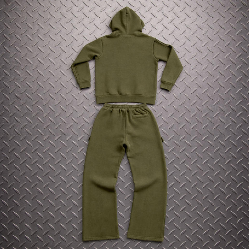 OEM Custom Distressed Patch Embroidery Logo Acid Wash Vintage Winter 100% Cotton Pullover Hoodie Flared Sweats Pants Heavyweight