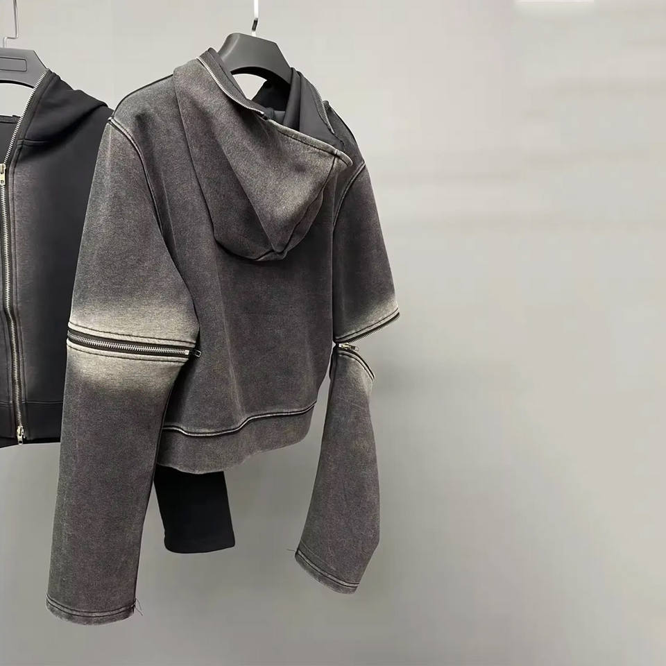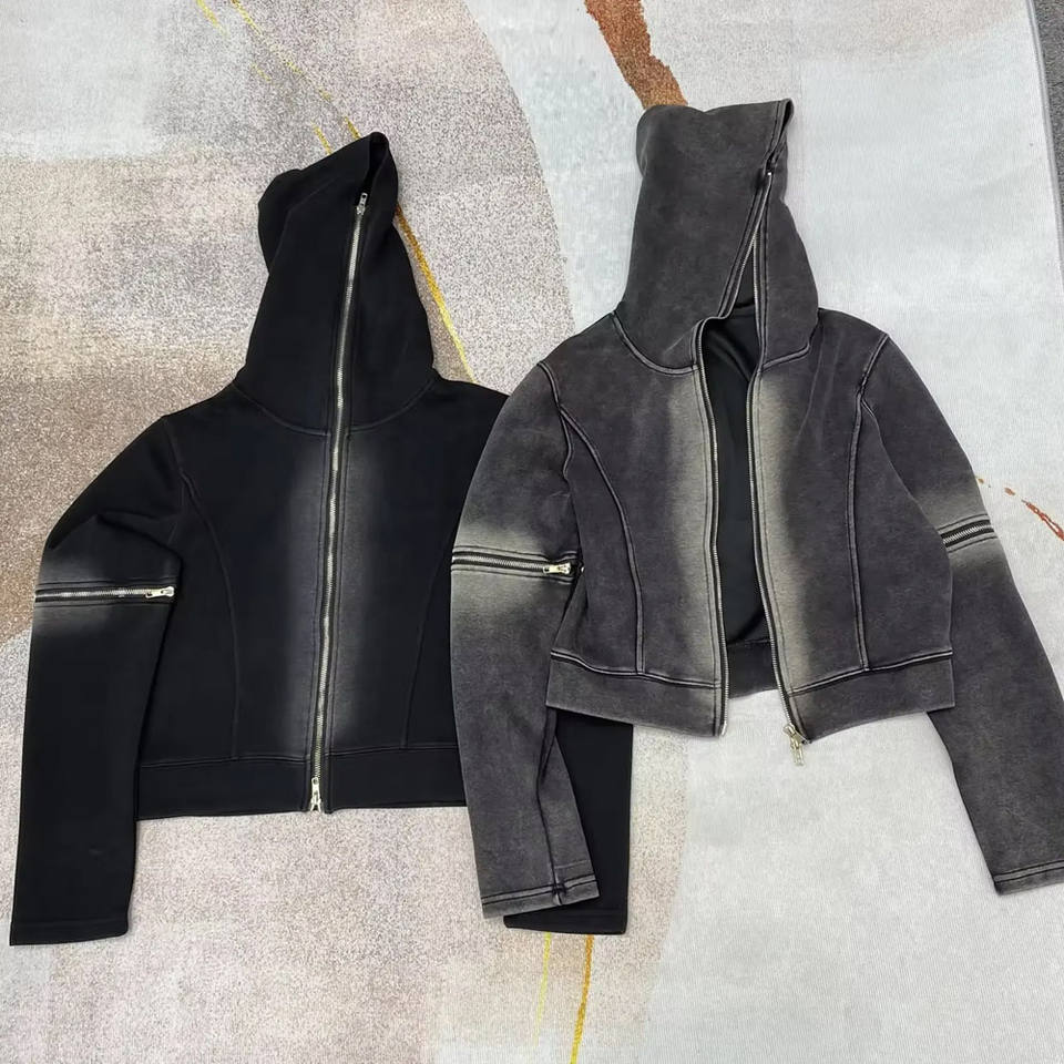 OEM Custom Distressed Vintage Heavyweight 100% Cotton French Terry Oversized Acid Wash Men's Hoodies New Style Zipper Hoodie