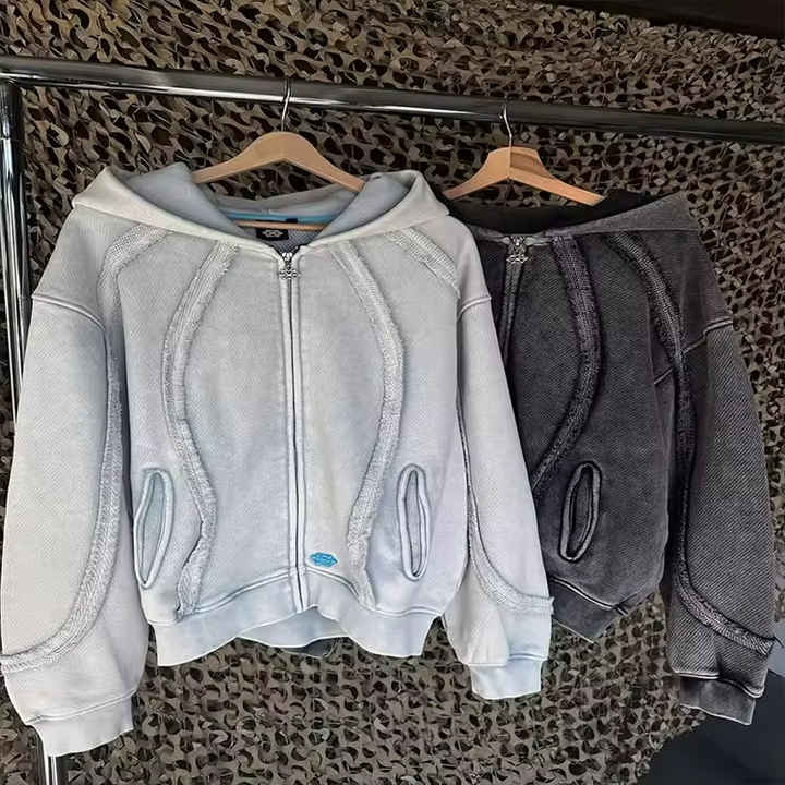 OEM Custom Distressed Vintage Heavyweight 100% Cotton French Terry Oversized Zip up Men's Hoodies