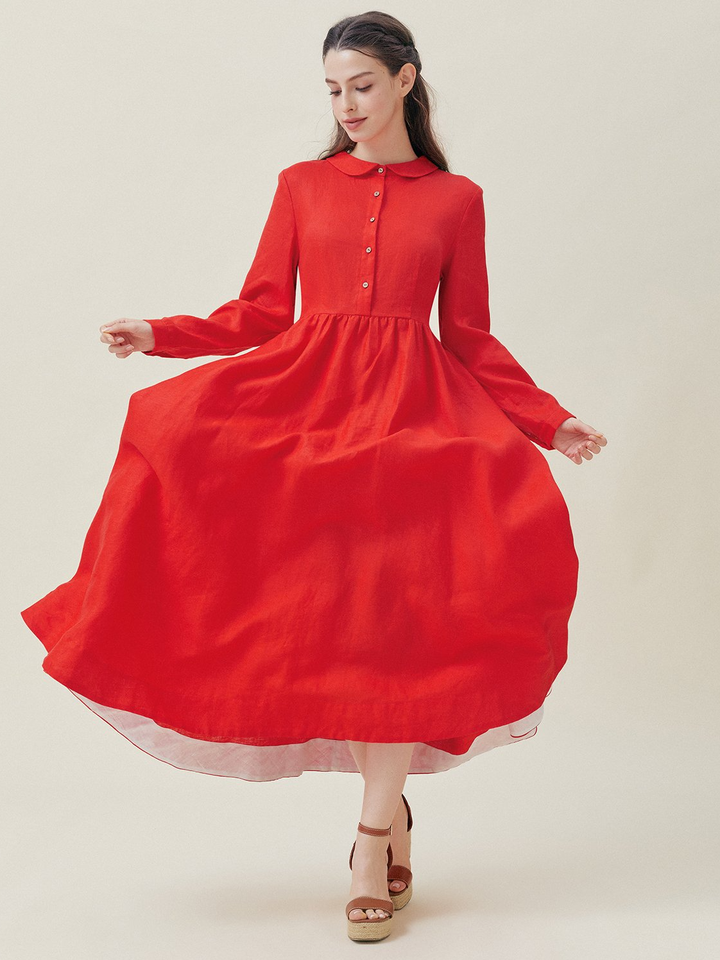 OEM Custom Elegant Slim Linen Cotton Dress for Women Casual Lady's Summer Party Evening Wear Natural Customizable Back Logo