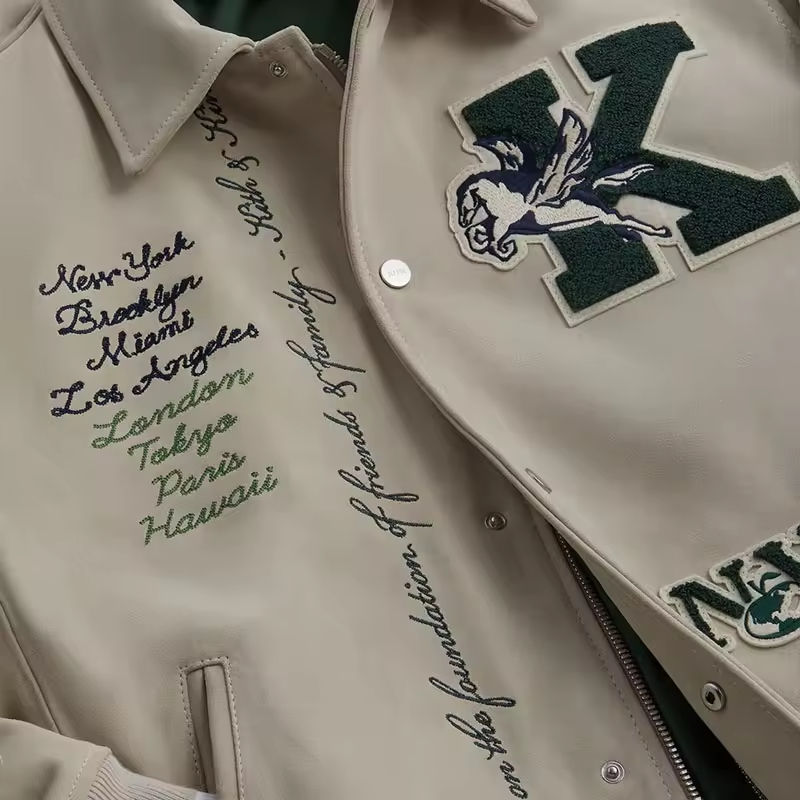 OEM Custom Embroidered Leather Baseball Bomber Jacket for Men Vintage College Varsity Style with Low MOQ Letter Pattern