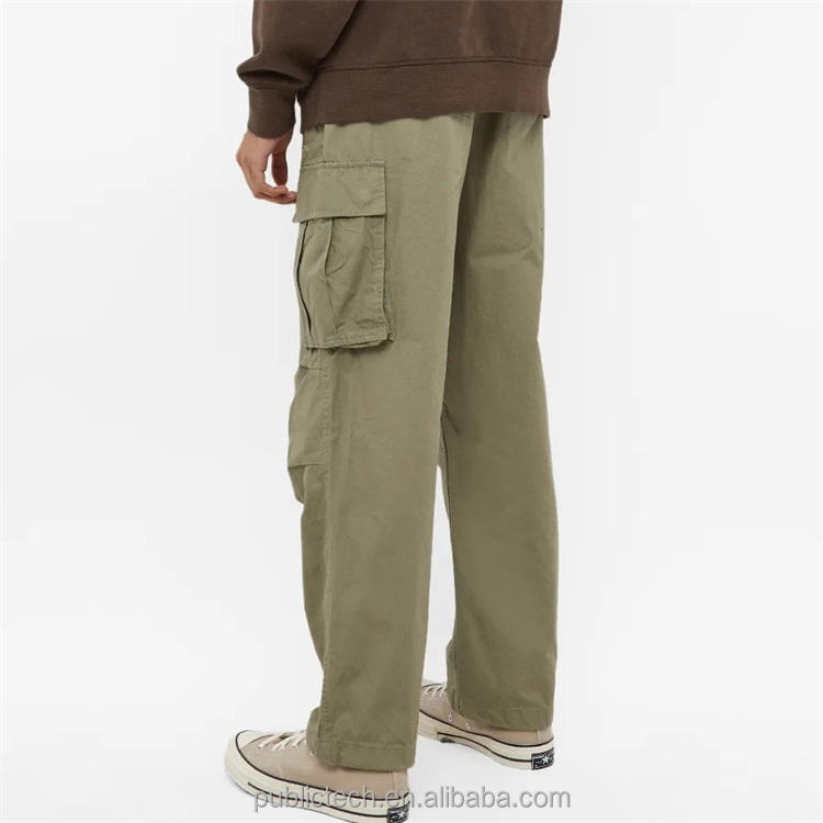 OEM Custom Embroidered logo Wide Leg Loose Baggy 4 Patch Pockets Cargo Pants for Men
