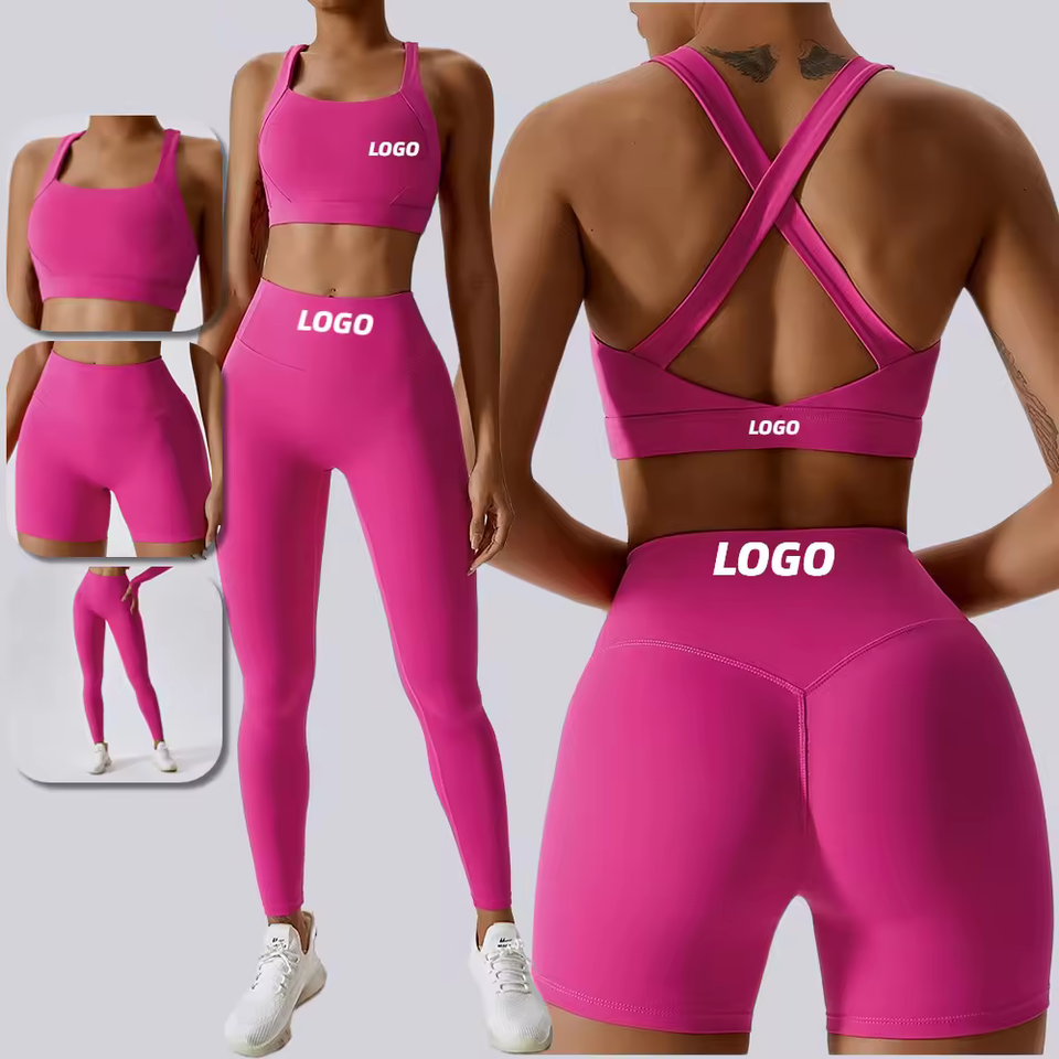 OEM Custom Fitness Yoga ActiveWear Set for Women Solid Pattern Butt Lift Leggings Full Zip Jacket 4-Piece Workout Suit Wholesale