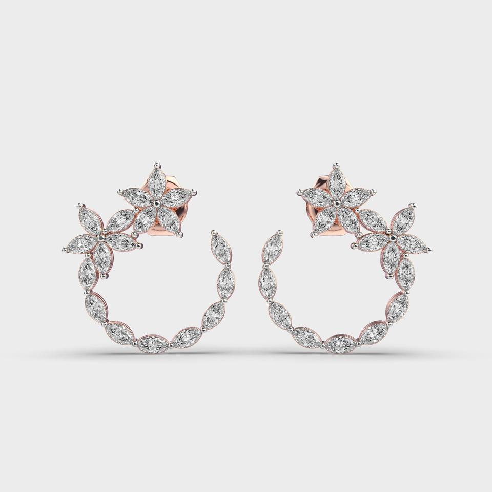 OEM Custom Floral Diamond Hoop Earrings Marquise Cut 9K Rose / White / Yellow Gold Designer Hoop Jewelry Manufacturer
