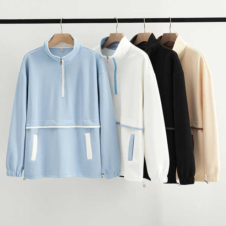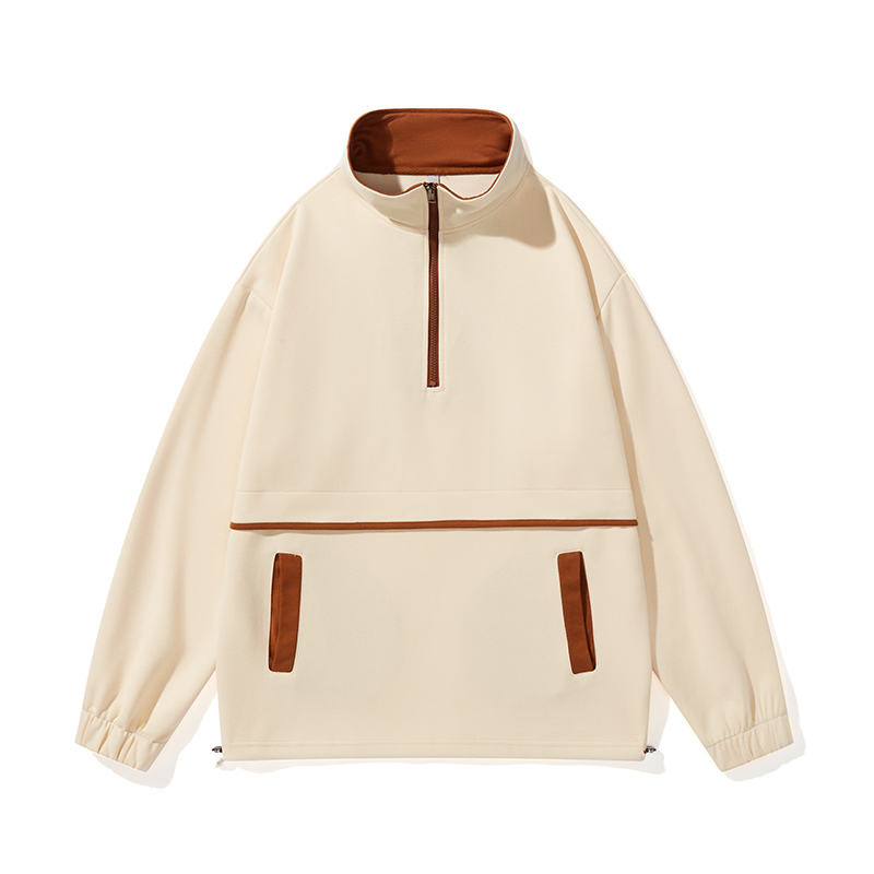 OEM Custom Funnel Zipper Neck Plain Pullover Quarter Snap Gray Sherpa Fleece Hoodie For Men