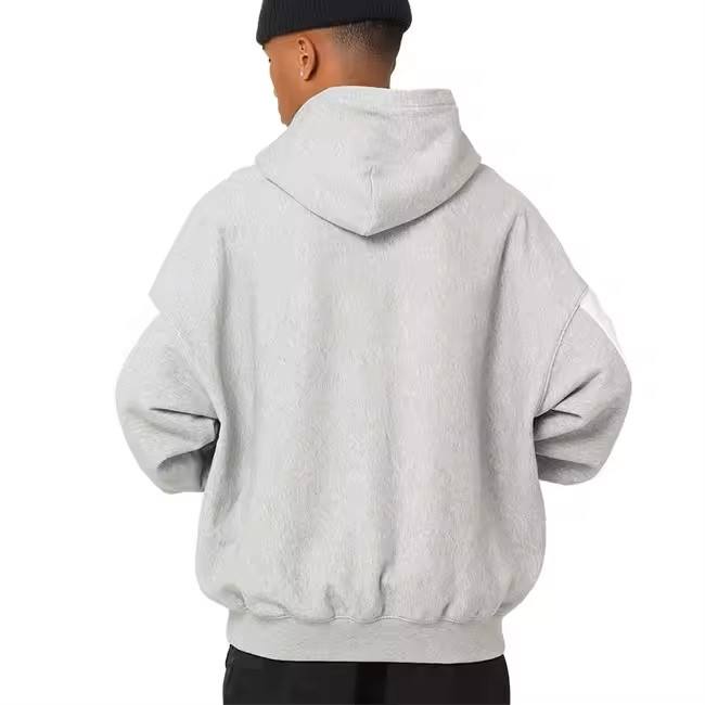 OEM Custom Grey Polyester/Cotton Zipper-Up Waterproof Pullover New Design Streetwear Hoodie Men Stand Collar Beaded Techniques