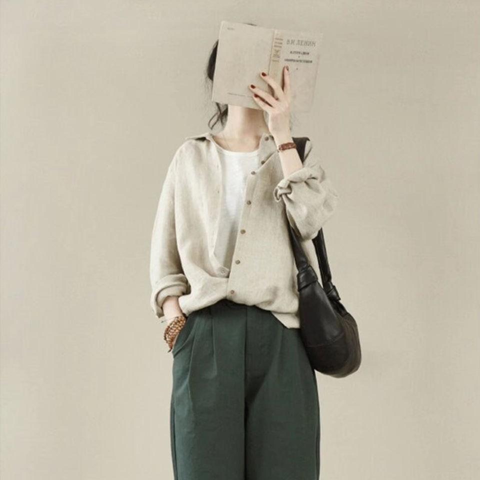 Product Name:Linen Long-Sleeve Square Collar Top