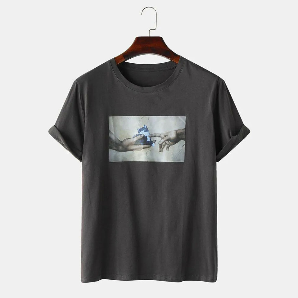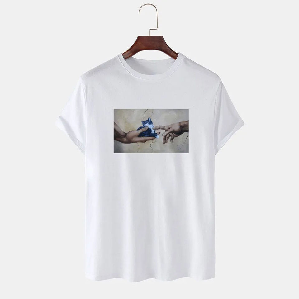 OEM Custom High Quality Men 100% Cotton Short Sleeve T-shirt DTF Printing Brand Pattern Vintage White T-shirt