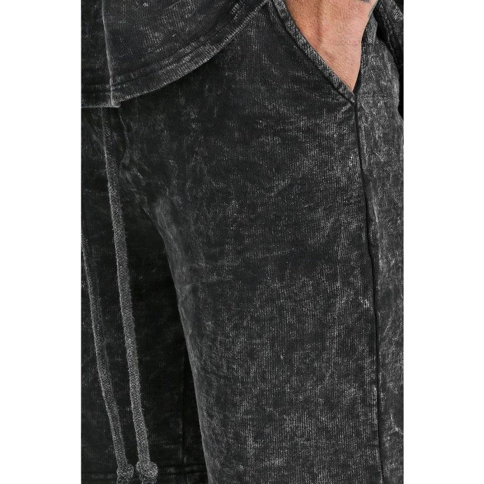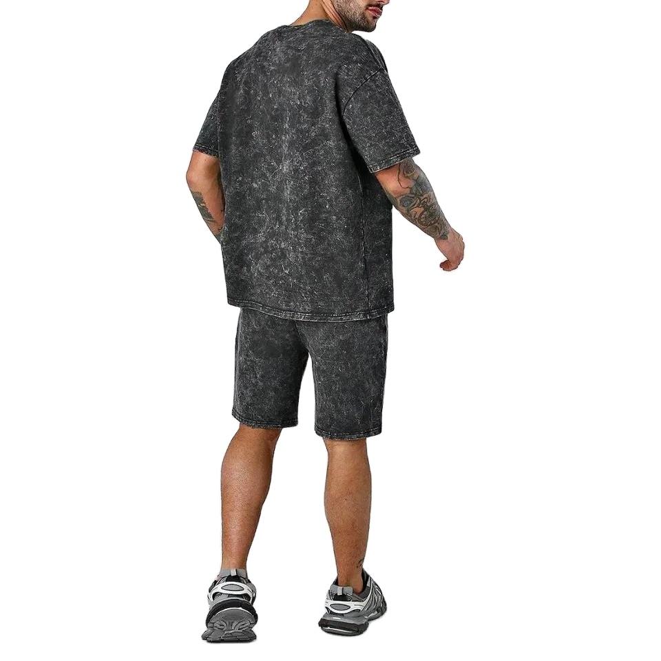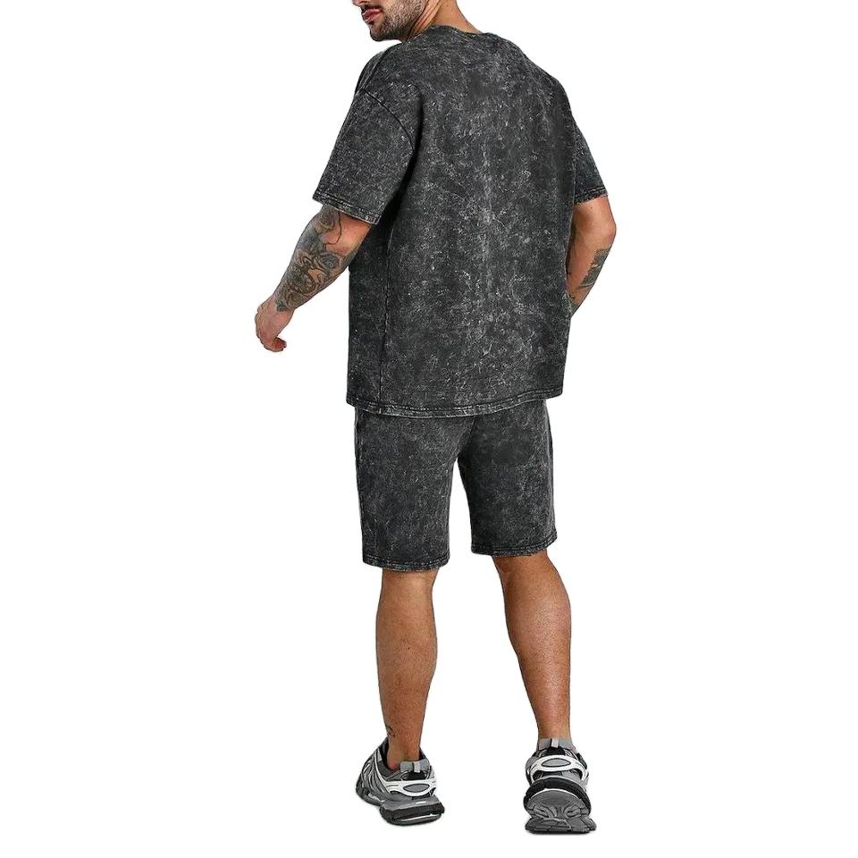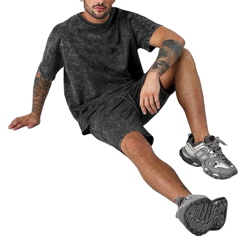 OEM Custom High Quality Men's Summer Shorts Set 100% Cotton Jersey Acid Washed Crew Neck T Shirts Set 250 GSM Fabric For Men